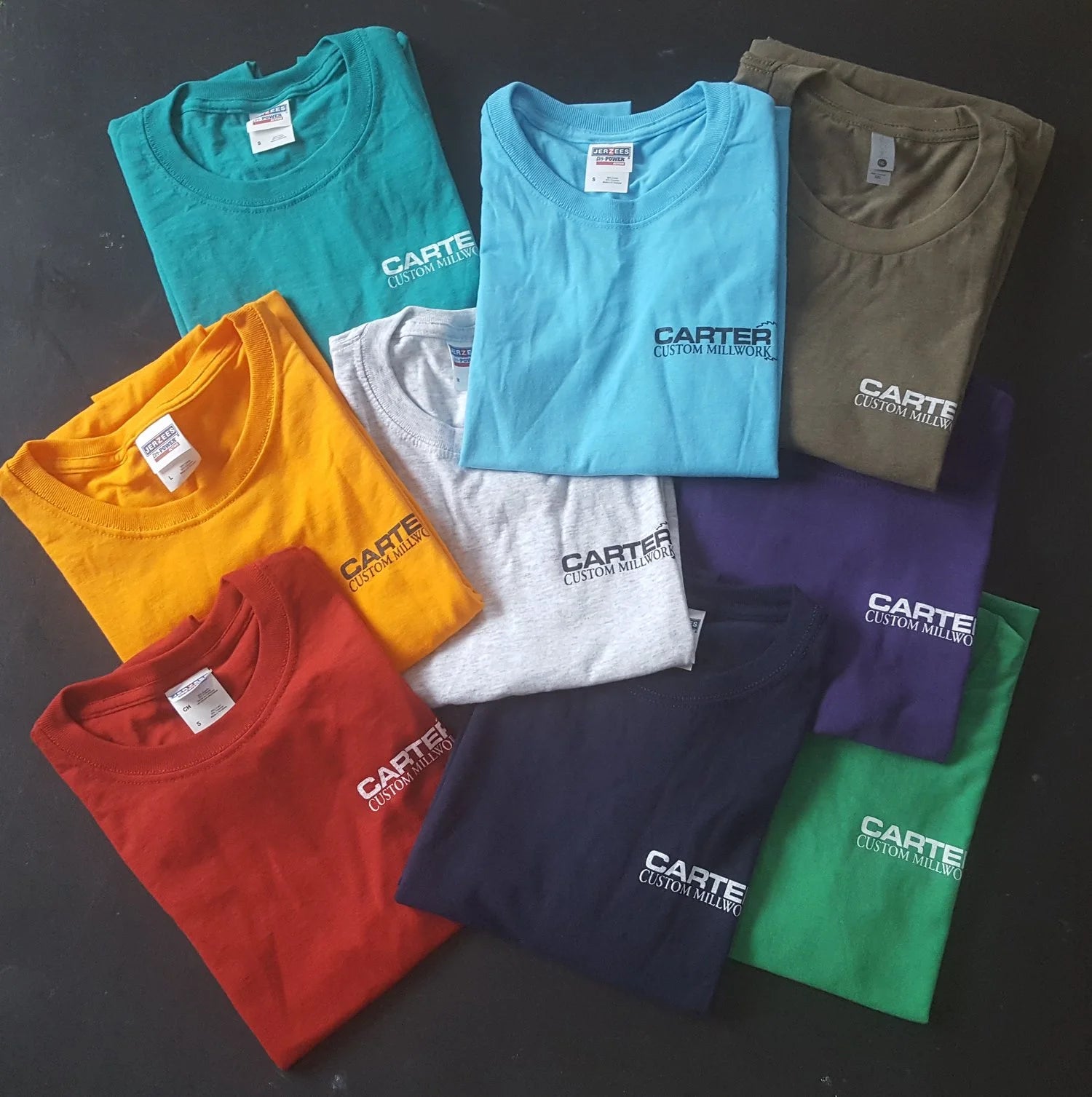 We would love to print your logo, slogan, or design unto an array of clothing and promotional products.